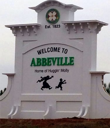 Generations of Abbeville children have listened wide-eyed to their parents tell the story of Huggin’ Molly. They have hurried home on nights lit only by the moon’s glow, certain they saw something in the shadows, afraid she would be around the next corner. Molly is a giant of a woman, maybe 7 feet tall and as big around as a bale of cotton. Some say her ghost still walks the streets of Abbeville late in the night, sweeping her black skirt as she goes. If she happens upon you, she chases you down, gives you a huge hug and screams in your ear.