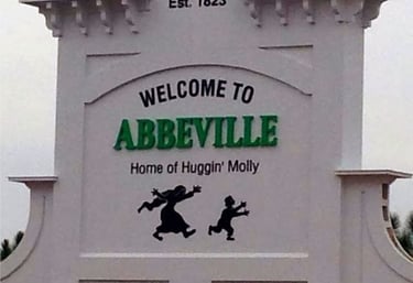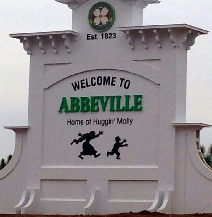 Generations of Abbeville children have listened wide-eyed to their parents tell the story of Huggin’ Molly. They have hurried home on nights lit only by the moon’s glow, certain they saw something in the shadows, afraid she would be around the next corner. Molly is a giant of a woman, maybe 7 feet tall and as big around as a bale of cotton. Some say her ghost still walks the streets of Abbeville late in the night, sweeping her black skirt as she goes. If she happens upon you, she chases you down, gives you a huge hug and screams in your ear.